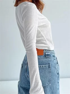 Women Top and Blouses Tie-up Cardigan Long Sleeve Crop Tops Summer Fall Casual Sexy Aesthetic Knitted Shirts Solid Color